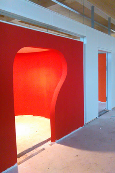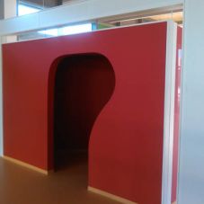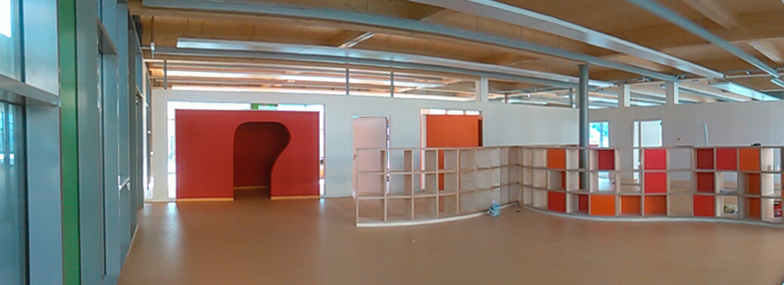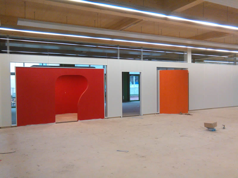 Aufgabe war es hier, einen Begegnungsraum in einer Schule mit einer microperforierten Wandverkleidung zu versehen. Diese Verkleidung wurde aus großflächigen Phone Stopp Akustikmodulen gefertigt, welche verdeckt an die Wand gehängt wurden.